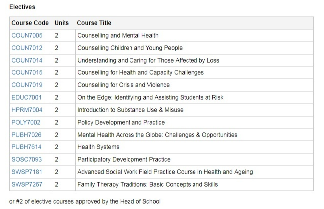 这项计划是由澳大利亚社会工作者协会(AASW)认可的,学生读完该课程,可以申请职业评估。