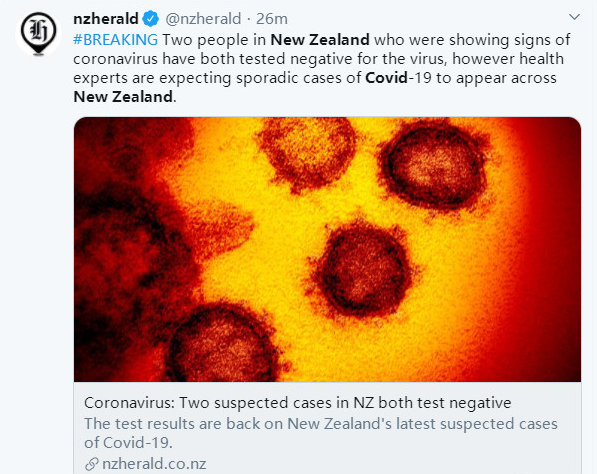 所以,新西兰昨日的两例疑似病例都被排除了。