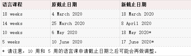 我们陆续收到来自世界各地的学生反馈由于目前雅思考试中心和签证中心关闭,不能及时参加雅思考试或申请签证。考虑到这部分同学的情况,大学目前正在积极探索为 14 周/ 10 周/ 5 周的学生提供部分线上课程,并且在讨论是否可为 18 周课程的学生延期至 14 周课程。有更新我们将与大家及时分享。