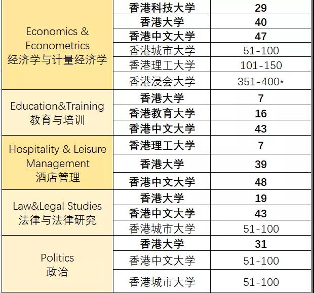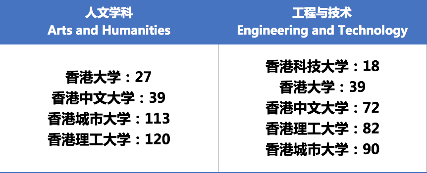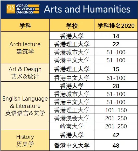 在人文学科领域,香港大学和香港中文大学依然领跑,而香港理工大学和香港城市大学也在这个领域打入世界前150,说明理大和城大的文科也很强!