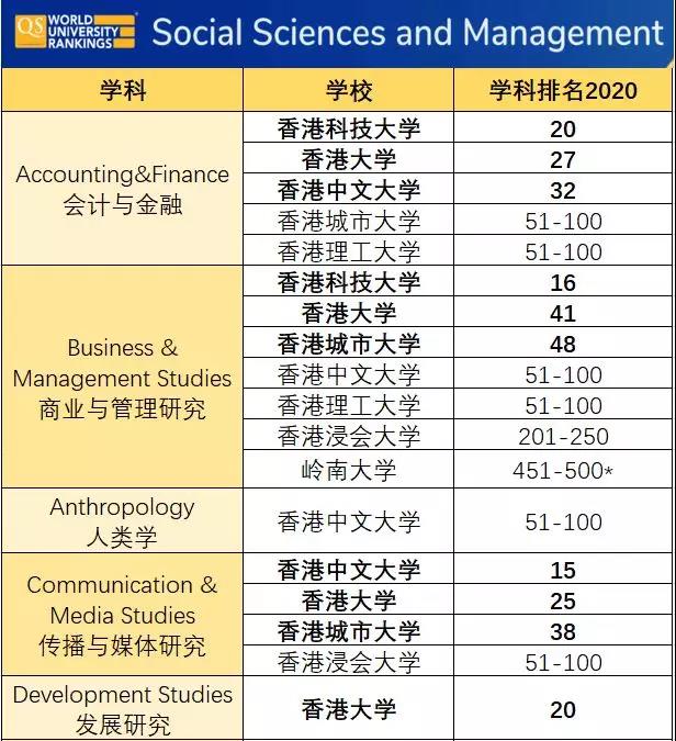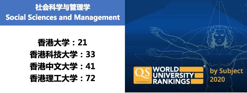 最后,在 社科 领域(包含商科), 香港大学 、 香港中文大学 、 香港科技大学 打入世界前50, 香港理工大学 打入世界前100。