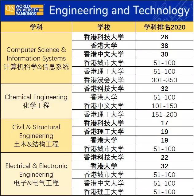 此次5大学科排名中,香港都有大学打入世界前100!香港大学全部学科进入世界前50。