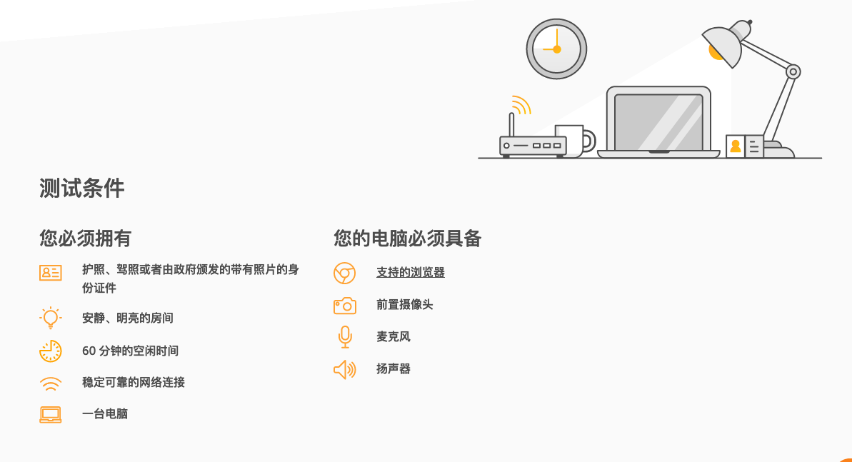 考试要求:(家里就可以考试哦)