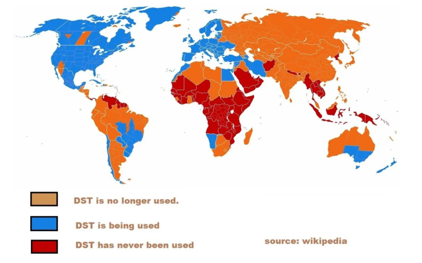 虽然夏令时,冬令时的使用在北美洲非常的普遍,而事实上,目前只有大约70个国家仍然在坚持使用冬令时和夏令时的转换制度。