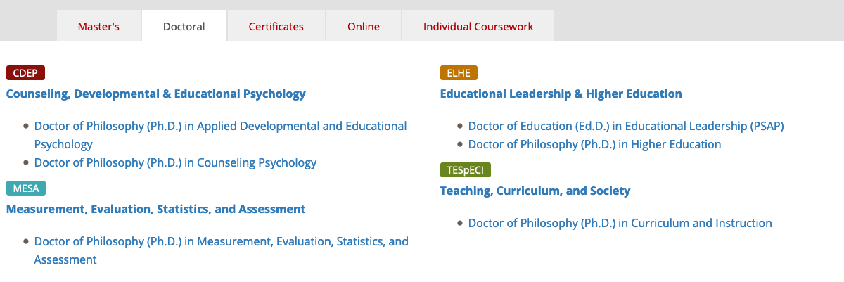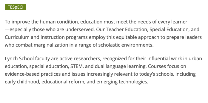 波士顿学院的Lynch学院下的教育学博士主要有以下四个分支。