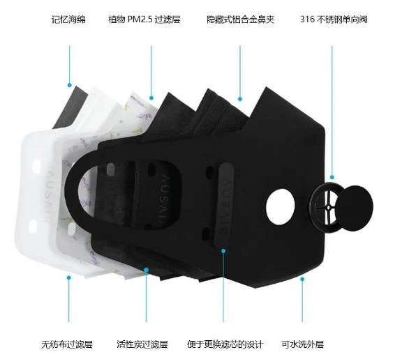 这款口罩利用最新材料科学技术研发的植物过滤层来自澳大利亚农场的天然植物,在有效过滤空气的同时还带来天然香气和植物功效,可持续使用2-4周。可水洗的外层采用强韧又亲肤的PU材料制作,可保证水洗超过100次不变形。其单向呼吸阀由超薄316不锈钢制成,防止热气积聚,配合记忆海绵紧密贴合脸部轮廓,穿戴更舒适。