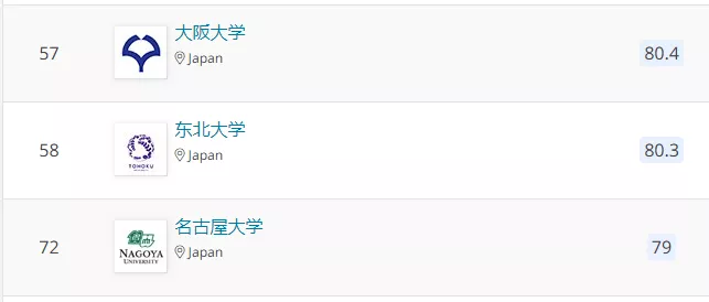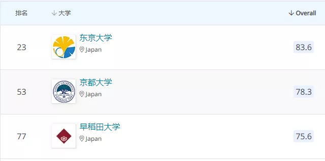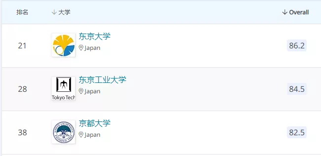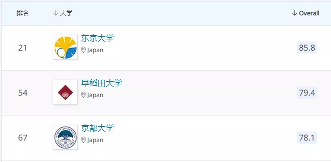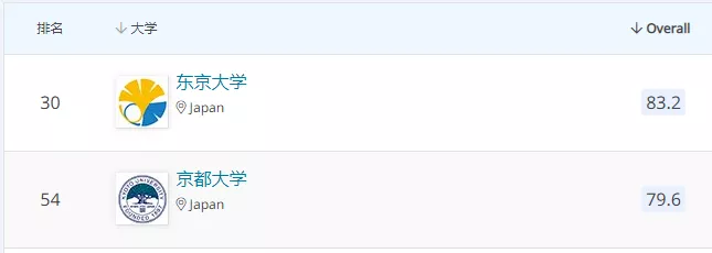 那么日本的大学在本次排名中表现如何呢?快来一起看看吧!以下图片只截取了世界排名前100中的日本大学。