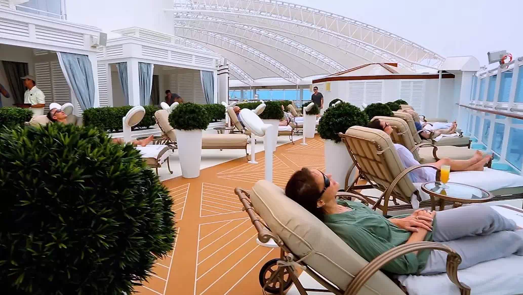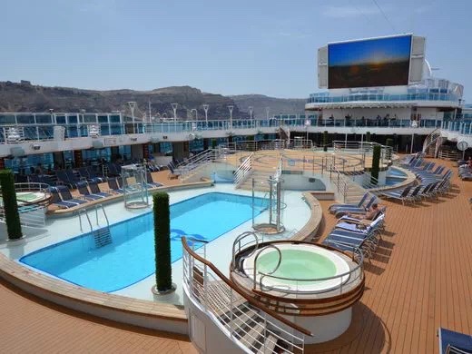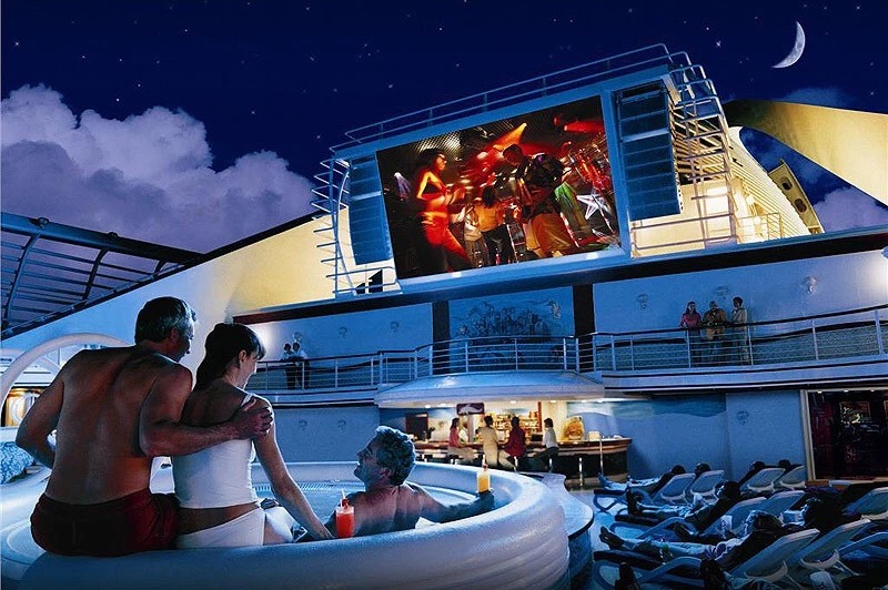 游轮上的露天游泳池、巨屏电视和 hot tub