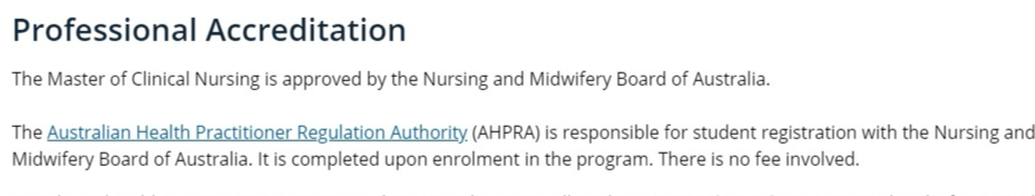 除了排名,南澳的移民政策一直非常好,阿德莱德的临床护理硕士是受澳大利亚医疗从业者监管协AHPRA。毕业以后达到语言要求就可以通过职业评估,成为注册护士。