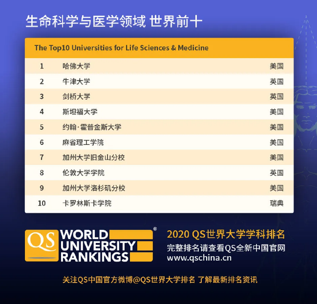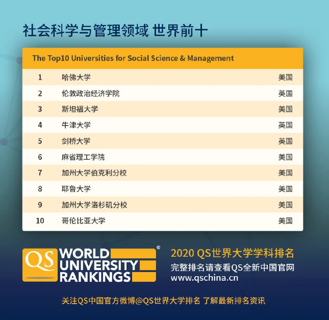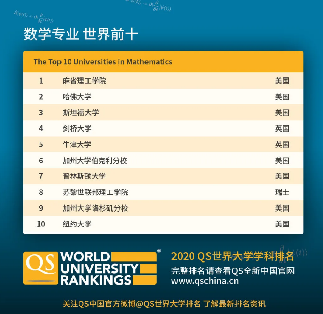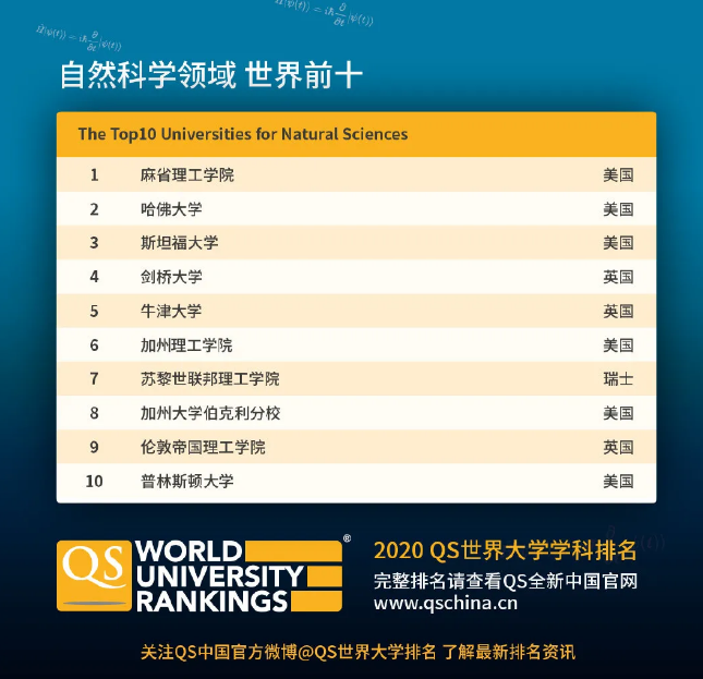 五大学科领域世界前十名