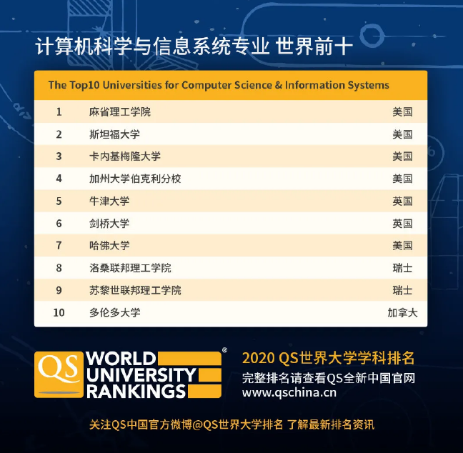 以下是很多同学都关心的学科前10