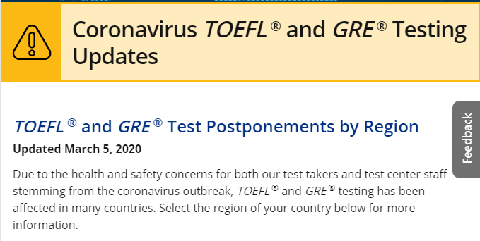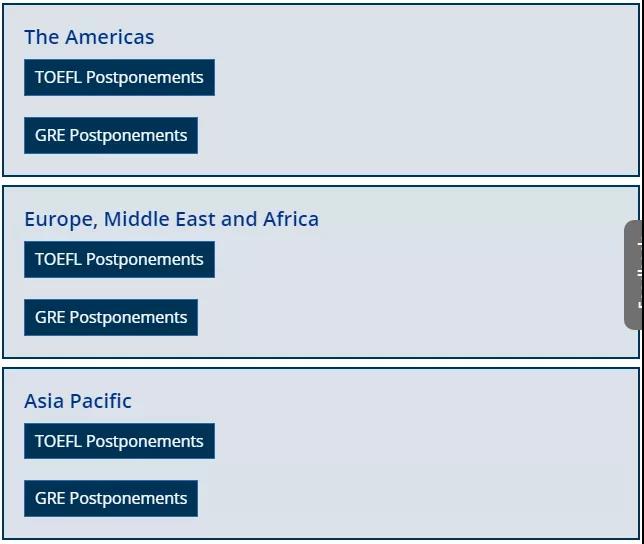 为了第一时间让考生查看到因疫情而取消的考点,ETS官网也做了更新。