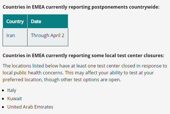 意大利、科威特、阿联酋:部分考点取消。
