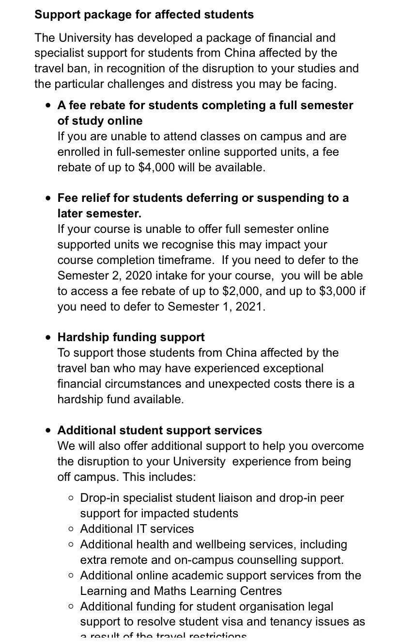 其实,针对这次禁令很多学校都在行动,在不同程度上来帮助学生缓解经济压力,就在今天,悉尼大学也终于出手了!
