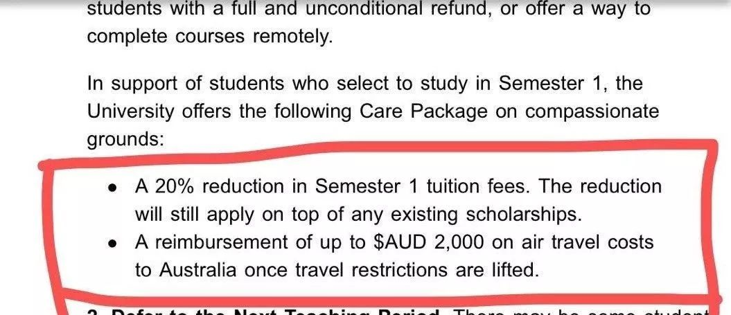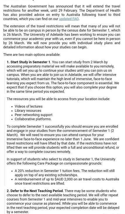 阿德莱德大学对于那些不愿意efer,选择中转第三国按时上课的同学有以下优惠。