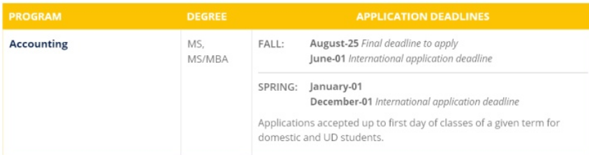 - 1年或者低于1年的项目时长,针对Delaware本科会计专业的学生。