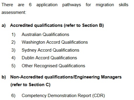 Tips: Competency Demonstration Report (CDR), 能力描述报告。可以这样理解,就是在中国就读工程师专业毕业的同学,可以通过描写CDR来通过职业评估,来进行移民。不过如果单纯在中国读书,offshore 的形式下,即使通过职业评估,也很难移民,因为澳洲移民都实行打分制。这种比较适用于在中国读了工程专业,然后到澳洲留学2年拿到工签的同学。例如:有一个同学在中国读的工程专业,后面来塔州读的IT硕士。毕业后,拿到了两年的工作签证,因为IT在移民的时候,需要一年的PY的时间。该同学想毕业后迅速移民,他就拿他中国的工程本科,写了CDR,通过工程师职业评估,然后在塔州以工程师这个职业拿到了190的州担保,现在移民塔州了。
