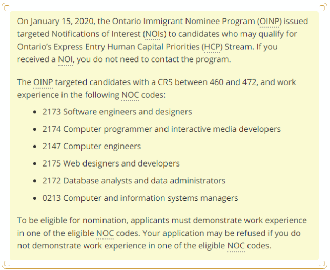 2020年1月15日,安省移民提名计划(OINP)开始有针对性的对符合进入安省人力资本优先计划的候选人发出通知。