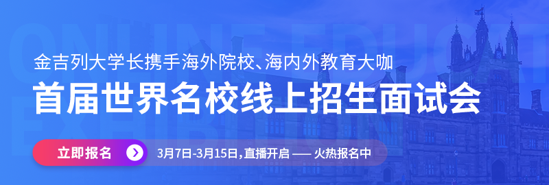 3月7日至3月15日,金吉列留学首届世界名校线上招生面试会。美国共计30家院校招生代表及产品合作方参加,包含USNews排名Top40的美国东北大学等优质院校,其中7所为Top100,更有USNews全球教育专家为您解读USNews排名背后的秘密以及选校秘诀,同时包含艺术类、中学等各类院校满足不同需求。有多款产品为您保驾护航,提供安全保障,解决留学安全后顾之忧。也有数学竞赛助力学生更进一步。业内大咖齐聚一堂,为您揭示最真实的美国留学。