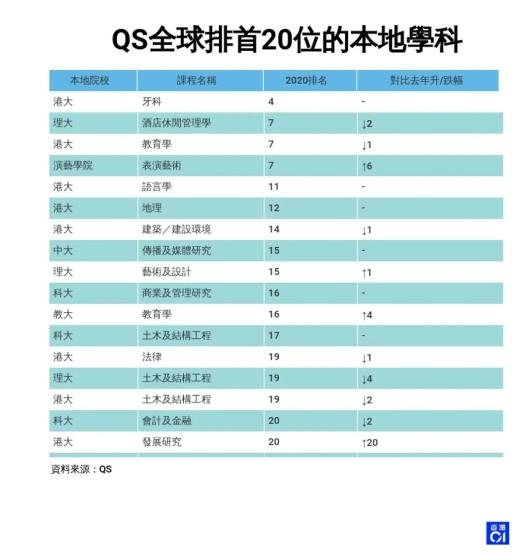 2020年QS世界大学学科排名出炉,香港有10个学科进入世界50强。