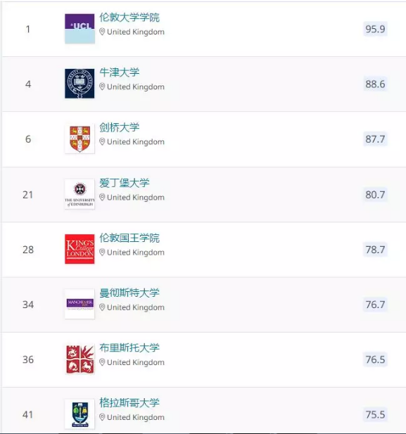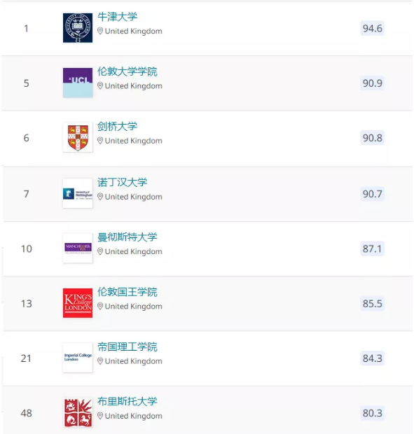 在48个细分学科排名中,英国大学在13个学科里排名世界第一 ,下面一起看看英国高校在这些学科的表现: