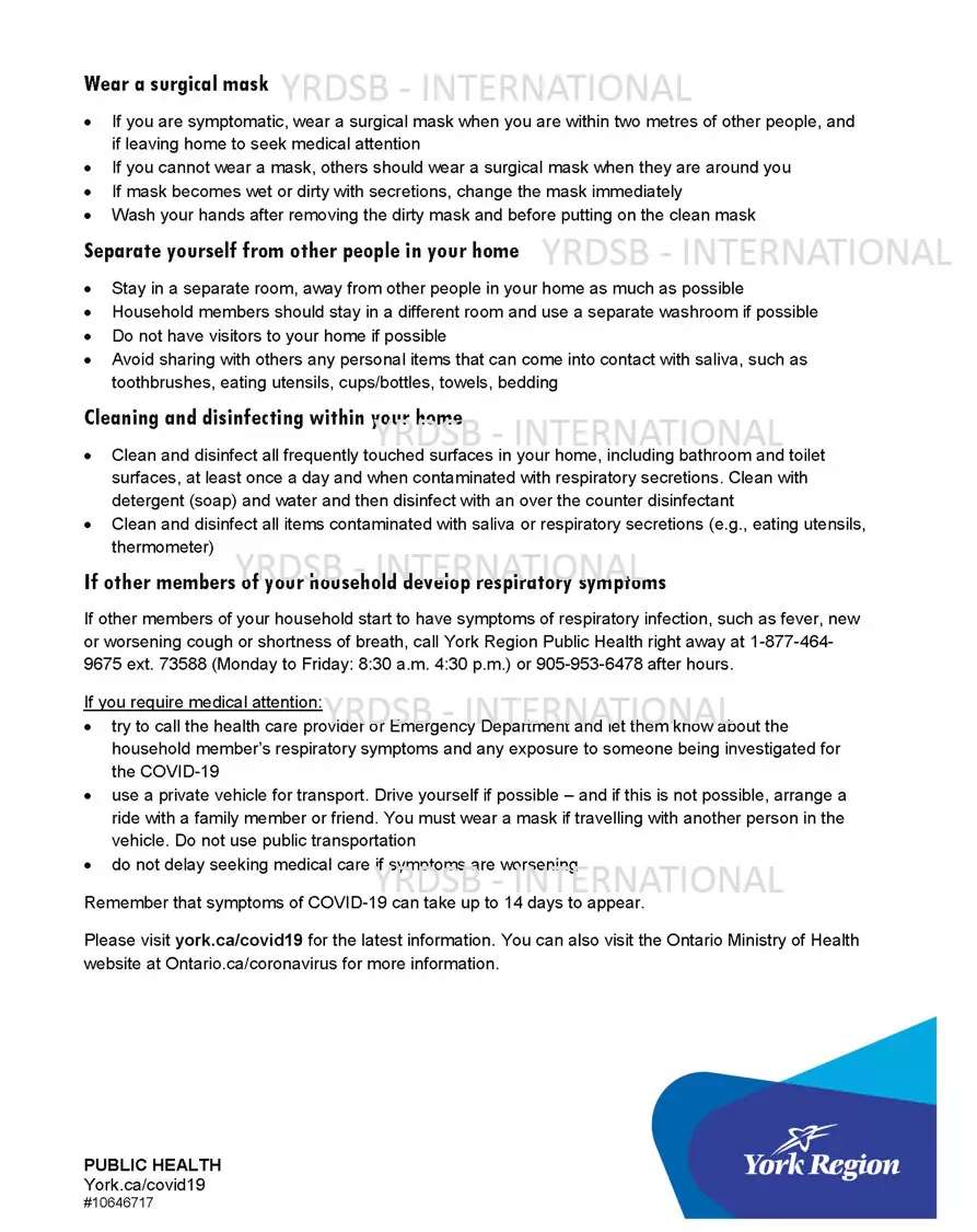 York Region now has seven confirme cases of novel coronavirus (COVID-19). All seven cases have been associate with travel to affecte areas. There is no evience of COVID-19 circulating locally in York Region communities. Staff, stuents, parents an guarians shoul refer to york.ca/covi19 for the most up-to-ateinformation on this evolving situation.