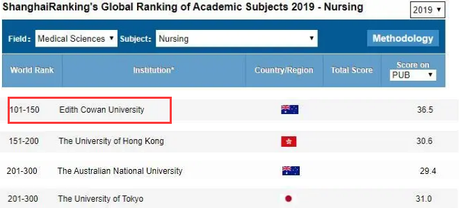 根据上海交大2019世界大学学科排名 ,ECU的护理专业排名101-150,ECU的护理专业在此次排名中位于香港大学,澳洲国立大学和东京大学之前。