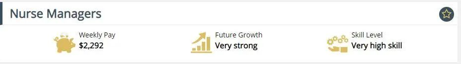 注册护士积累一定工作经验后,有机会晋升为护士长, 工资会有更高的提升。从上图看到,护士长的平均工资,周薪达到了A$2292,月薪达到了A$9822,约人民币4.4万元,在澳洲属于高收入群体。