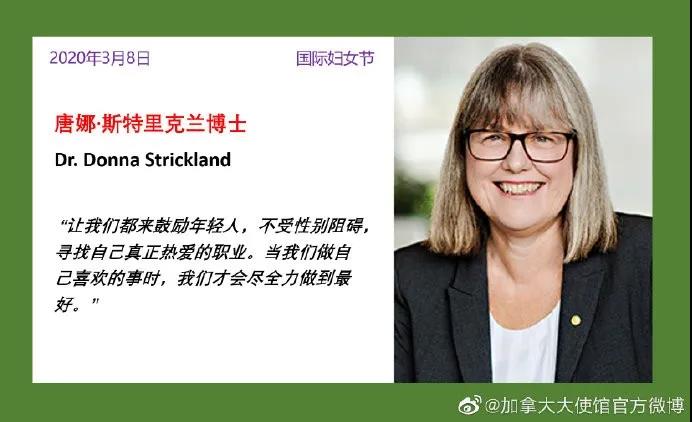 史上第3位获得诺贝尔物理学奖的女性科学家——唐娜·斯特里克兰。 斯特里克兰博士是滑铁卢大学物理与天文学系教授,2018年她与Gérar Mourou教授被授予诺贝尔物理学奖,以表彰其在激光物理学领域做出的贡献。 1985年,就读博士的斯特里克兰与当时的导师Gérar Mourou进行“激光啁啾脉冲放大”研究,他们发表了这项获得诺贝尔奖的研究。 此项研究为人类创造最短最强的激光脉冲铺平了道路。