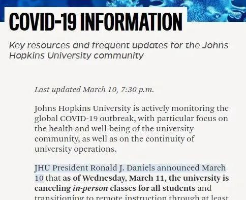 约翰霍普金斯大学4月12日前不得返校
