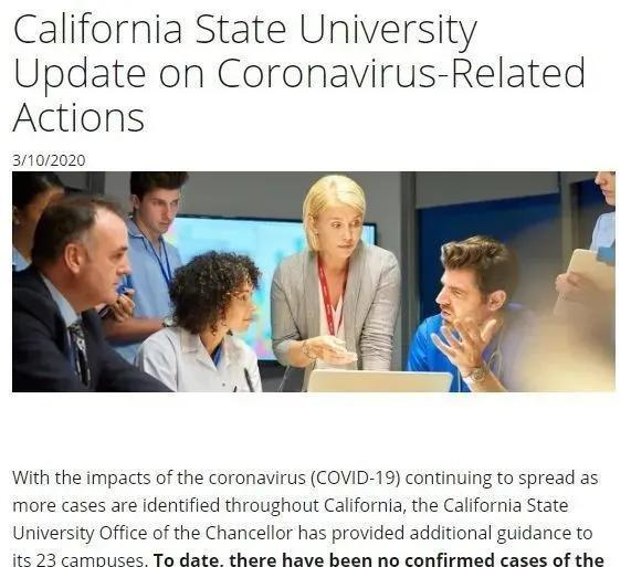 此外, 加州州立大学系统23个校区的负责人目前在紧急探讨是否将课程改为线上。