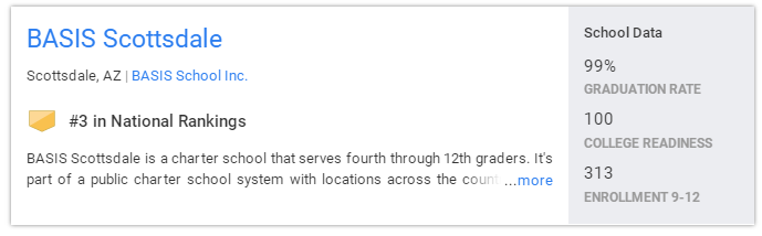 - BASIS Phoenix(亚利桑那) 最佳磁石高中Top10