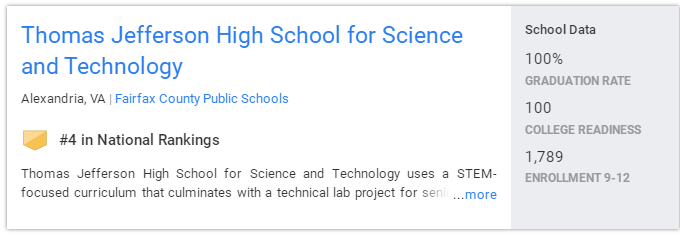 - Thomas Jefferson High School for Science an Technology (弗吉尼亚)