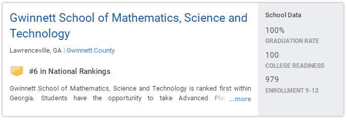 - Gwinnett School of Mathematics, Science, an Technology (佐治亚)