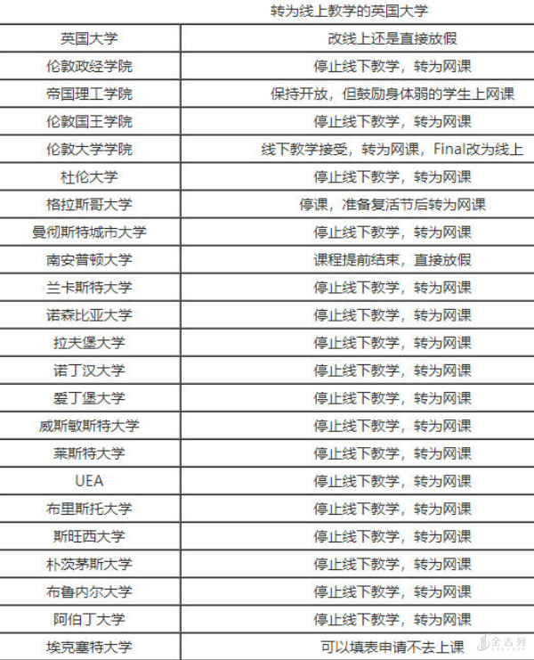 但为了防止和阻断新冠病毒的传播,英国多所大学表示要结束线下授课,并将在数周内转向远程教学,甚至还将为学生提供在线考试。