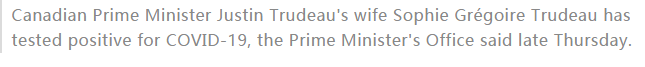 近期,海外疫情不断有爆发态势,加拿大的疫情也在逐步升级,加拿大总理特鲁多(Justin Trueau)的妻子Sophie Grégoire Trueau已经确诊,特鲁多目前没有任何疑似症状,但是他表示会自我隔离14天。