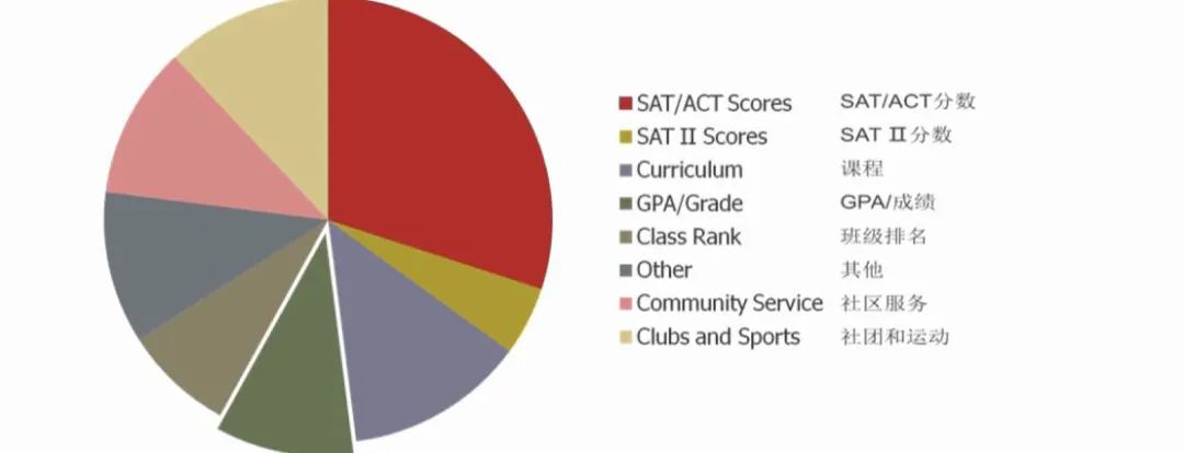 从上图不难看出, 考试成绩只占了很小的一个比例,学校还综合考量很多因素 ,比如近三年你的学习轨迹趋势,学习课程的难度是否含有大学难度的课程,社区服务以及社团和运动等。比如活动这一条,是不是活动越多越好呢,其实不然,学校希望看到你的活动有一个清晰的主线,是能反映出你的优点,而且与申请材料、要申请的专业都是一致的才行。面对这样面面俱到的要求,要想实现,要求家长和孩子要一起努力,早早开始准备,时时的总结反思再前进。
