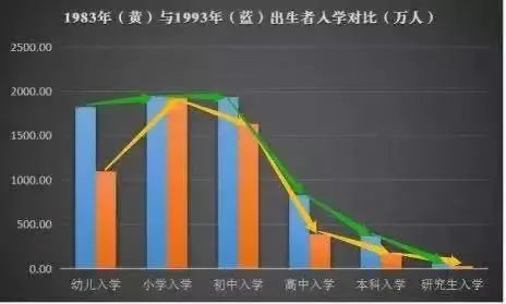 另一个很骨感的现实、也是我们不得不早早考量进来的因素,就是体制内教育的高淘汰率。作为九年义务教育的“终点“——中考,全国普通高中的初升高的淘汰率高达50%左右。近3年体制内路线从幼儿园到研究生毕业的数据和10年前的类似数据, 下降最陡的这两条线就是初升高阶段,淘汰率达到一半以上 。