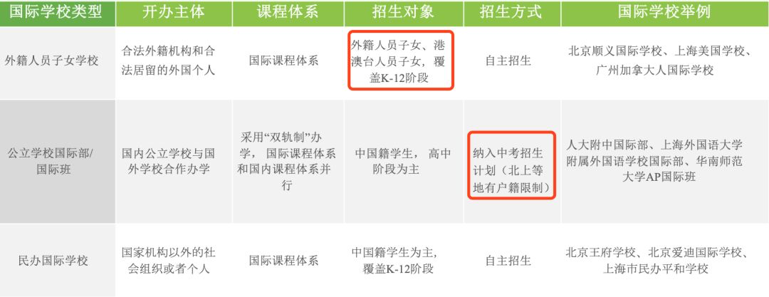 我们拿北京举例,有只招“外籍”学生的国际学校;性价比高的公立学校国际部有“户籍”的限制;如下图所示,所以第一步,咱先划定咱们能申请的学校的范围。