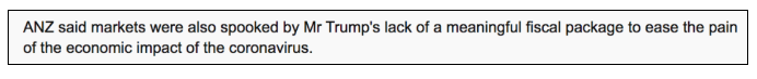 川普缺乏有力的财政配套措施以减轻新冠肺炎造成的经济影响,让各国市场感到震惊。