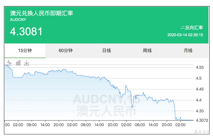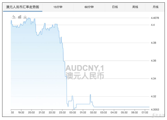 一觉醒来,澳币跟人民币的汇率,已经跌到1 CNY:4.3081 AUD,澳币已然踏入4.3时代!并且正朝着4.2大步走去!