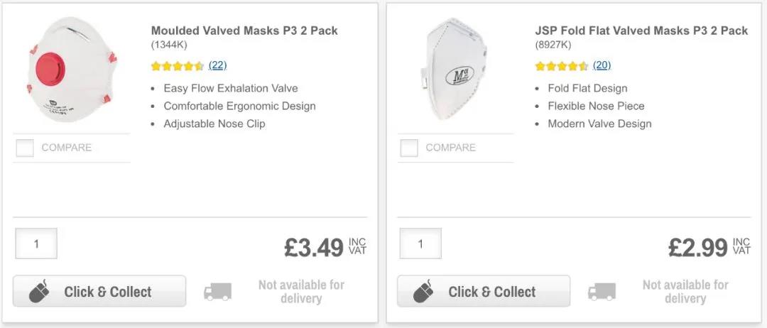 在Screwfix上可以买到口罩,是谢老师在小Re书上看到众多仙女小姐姐们的分享得知。