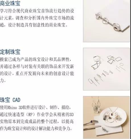 毕业生主要就业方向包括: 时尚设计师,时尚营销策划师,珠宝设计师,珠宝 MD(营销总监),创立珠宝品牌,中高等设计讲师等。