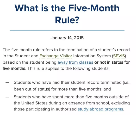 这个问题需要参考DHS关于SEVIS的“5个月规则”(Five-month Rule)。