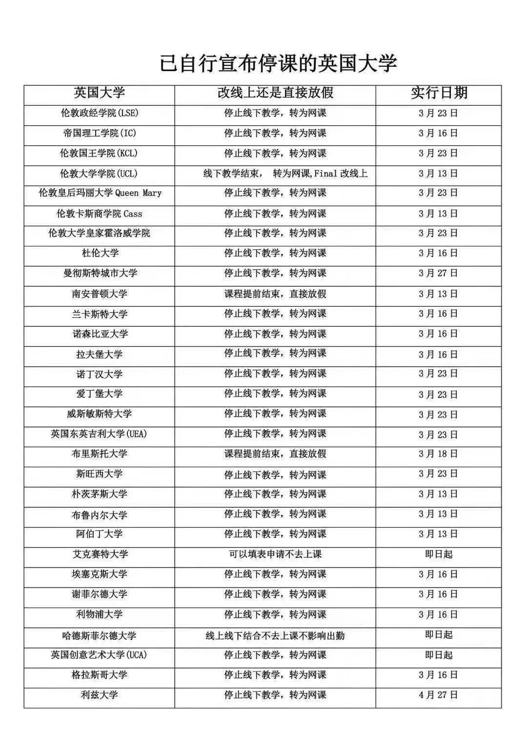 针对疫情,英国各个大学已经开始行动,他们根据疫情的发展,积极出台了一系列的相关政策: