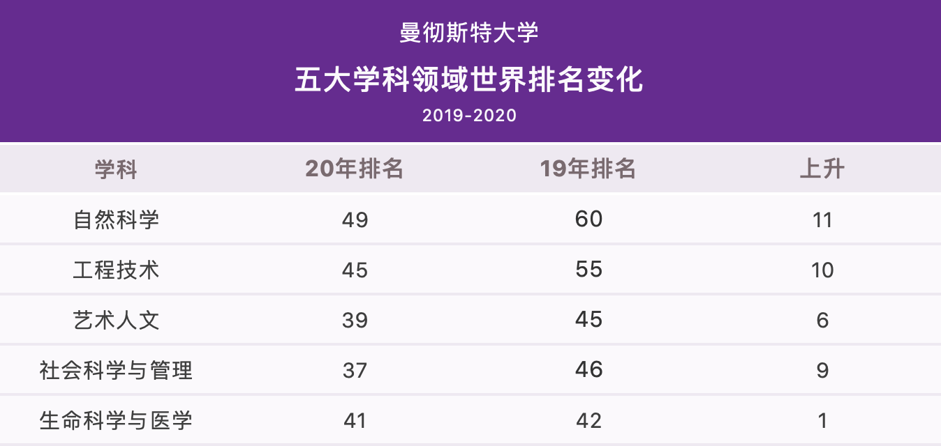 自然科学领域与工程技术领域,分别上升了11位、10位,迈入世界前50位,也成为了英国五大学科领域均上榜的三所高校之一,三所高校分别为牛津、剑桥、曼彻斯特大学。