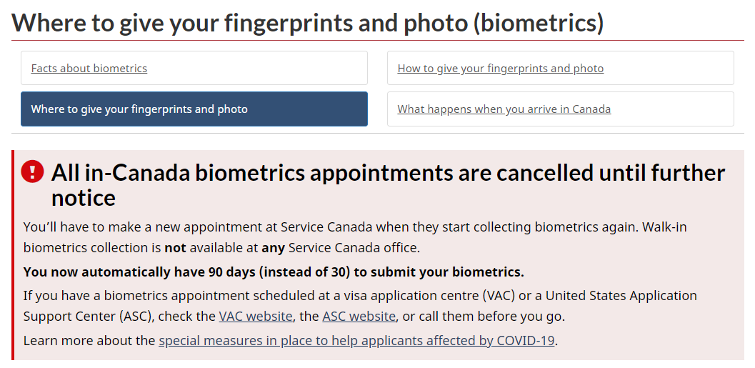 昨日移民局发布通知,所有加拿大指纹采集预约被取消,等待进一步通知,真的是心疼在加拿大境内等待续签的留学生们!
