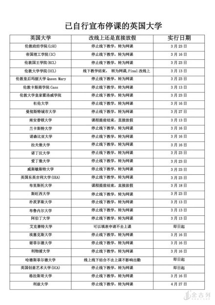 疫情原因,英国大学停课和取消考试,调整措施包括提前终止学期、改为在线授课和取消考试。