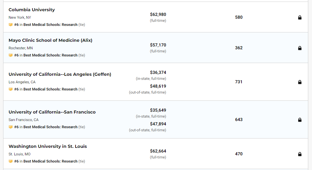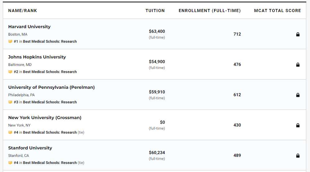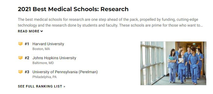 最佳医学院排名中,除了去年的并列第三名斯坦福大学略有下降(今年第四名)外,TOP3岿然不动。