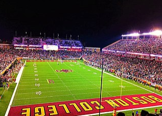 波士顿学院老鹰队在大学橄榄球中偶尔取得了成功。1940年11月16日,由BC的弗兰克·莱希(Frank Leahy)带领的冠军队在最后几秒钟从不败的乔治城大学(Georgetown University)进行了为期两年的胜利,这场比赛被著名的体育作家格兰特兰·赖斯(Grantlan Rice)称为有史以来最伟大的比赛。